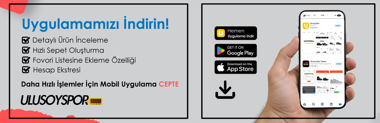 Toptan ayakkabı kategorisinde her ihtimale uygun geniş bir ürün yelpazesi sunuyoruz. Toptan erkek ayakkabı, toptan kadın ayakkabı ve toptan bebek ayakkabı modelleriyle her yaştan ve her tarzdan müşteriye hitap edebilirsiniz. Farklı spor aktiviteleri, mevsimsel ihtiyaçlar ve şıklığı bir arada sunan modellerle mağazanızda geniş bir çeşitlilik yaratabilirsiniz. Ürünlerimiz koli içerisinde 8'li assorti olarak gönderilir ve hızlı teslimat seçenekleriyle adresinize ulaşır.